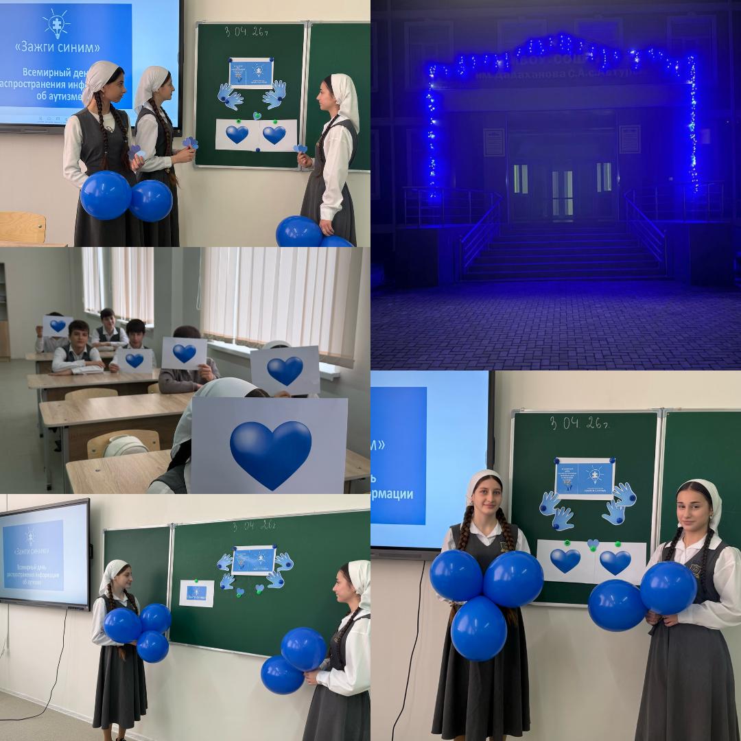 В нашей школе МБОУ «СОШ 4 им. Дадаханова С.А. с. Автуры» , провели акцию «Зажги синим». Вместе с детьми педагог-психолог организовала интересную акцию в поддержку детей с необычным мировоззрением. Дети были очень рады поучаствовать в акции.
