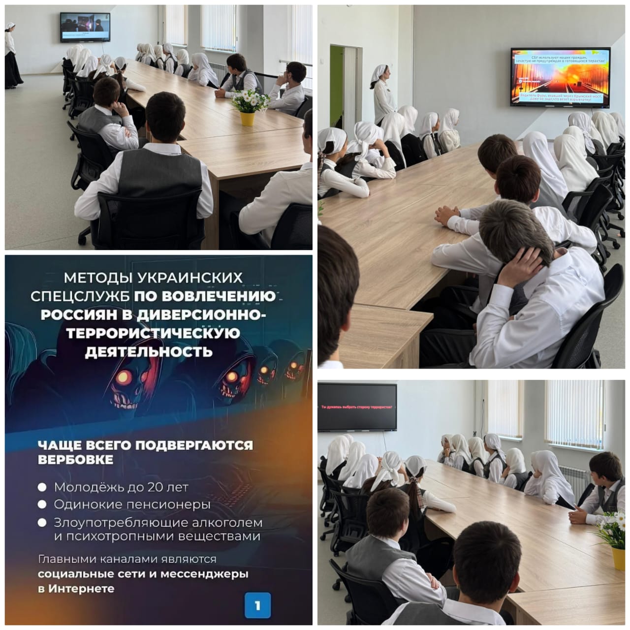 01.10.2025В целях профилактики экстремизма в МБОУ СОШ №4 с. Автуры им. С. А. Дадаханова провели мероприятие, на тему: «Последствия деструктивного сотрудничества подростков с украинскими спецслужбами». Учащимся был показан видеоролик на данную тему. Так же провели беседу о том, что за совершение преступлений экстремистской и террористической направленности УК РФ предусмотрена уголовная ответственность. Такие преступления относятся к категории преступлений против общественной безопасности и общественного порядка. Степень уголовной ответственности за такие преступления зависит от степени тяжести совершенного деяния — от штрафа до пожизненного лишения свободы.